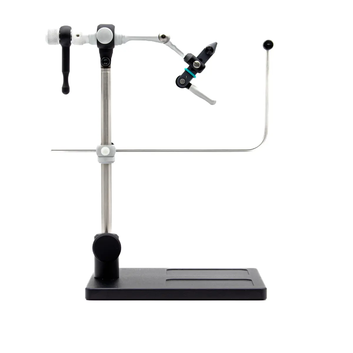 Renzetti Presentation P2004 Pedestal Vise delivers true rotary control, patented cam jaws, and ambidextrous versatility for precise fly tying performance.