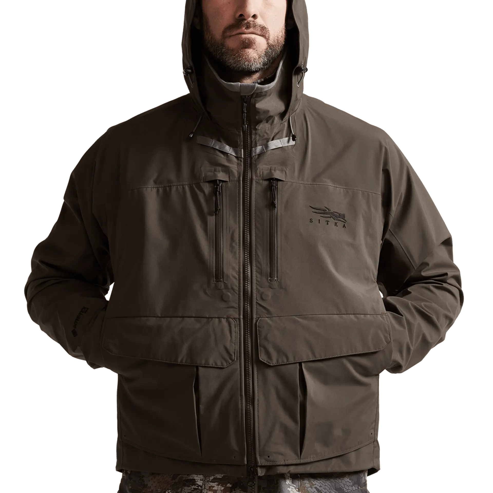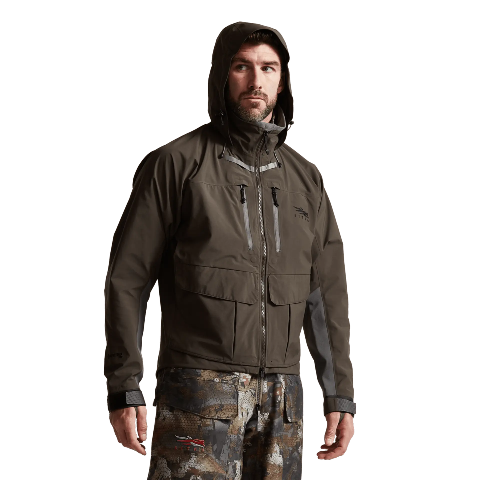 Elevate your outdoor experience with the Sitka Gear Delta PRO Wading Jacket, meticulously crafted to dominate the varied conditions of any flyway through all seasons. At its core, this jacket features a 3-layer GORE-TEX PRO fabric, ensuring the highest level of durable waterproofing and breathability, complemented by the resilience of an 80-denier nylon face. Its design is intentionally shorter to pair perfectly with waders while remaining uninsulated to maximize versatility with other layering pieces.