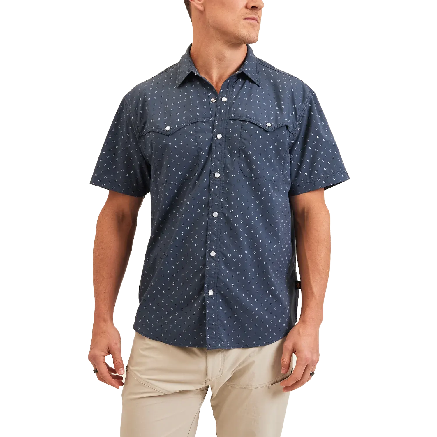 Introducing the Howler Bros Open Country Tech Shirt, a masterpiece that seamlessly integrates technical prowess with the effortless cool of everyday fashion. This shirt is designed for the modern adventurer who values functionality without compromising on style. Its blend of technical features with classic elements like pearl snaps brings a new level of sophistication to outdoor apparel.