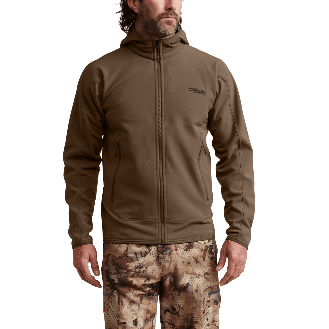 A durable water-repellent (DWR) finish sheds light rain and moisture, while the low-bulk, form-fitted hood offers protection without compromising visibility. Thoughtful seamless shoulder construction and strategically placed zippered pockets ensure maximum comfort and accessibility, even when wearing a pack. Whether you're on the move or glassing for game, the Alpha Fleece Hooded Jacket provides the rugged reliability you need in the field.